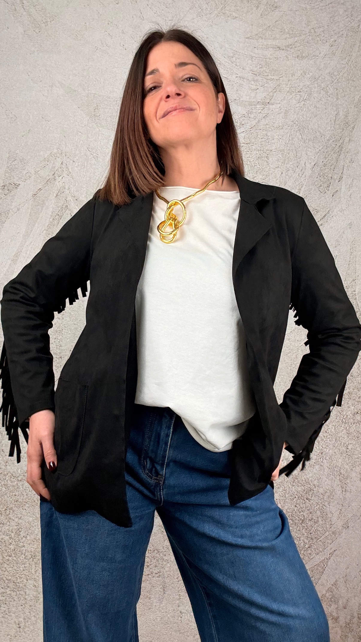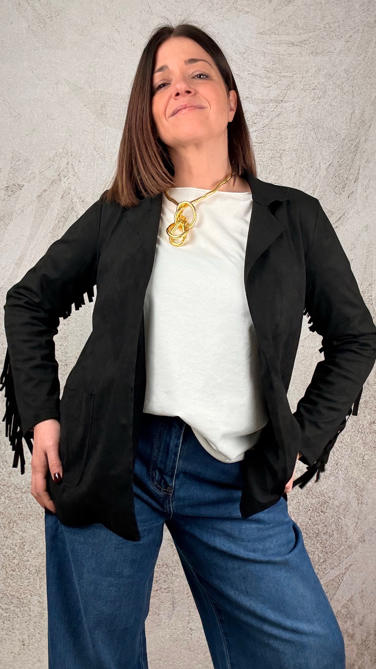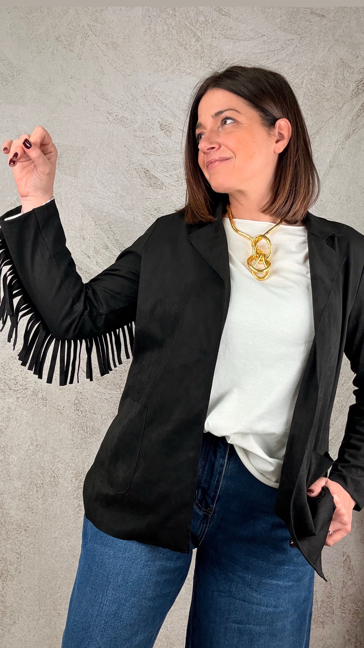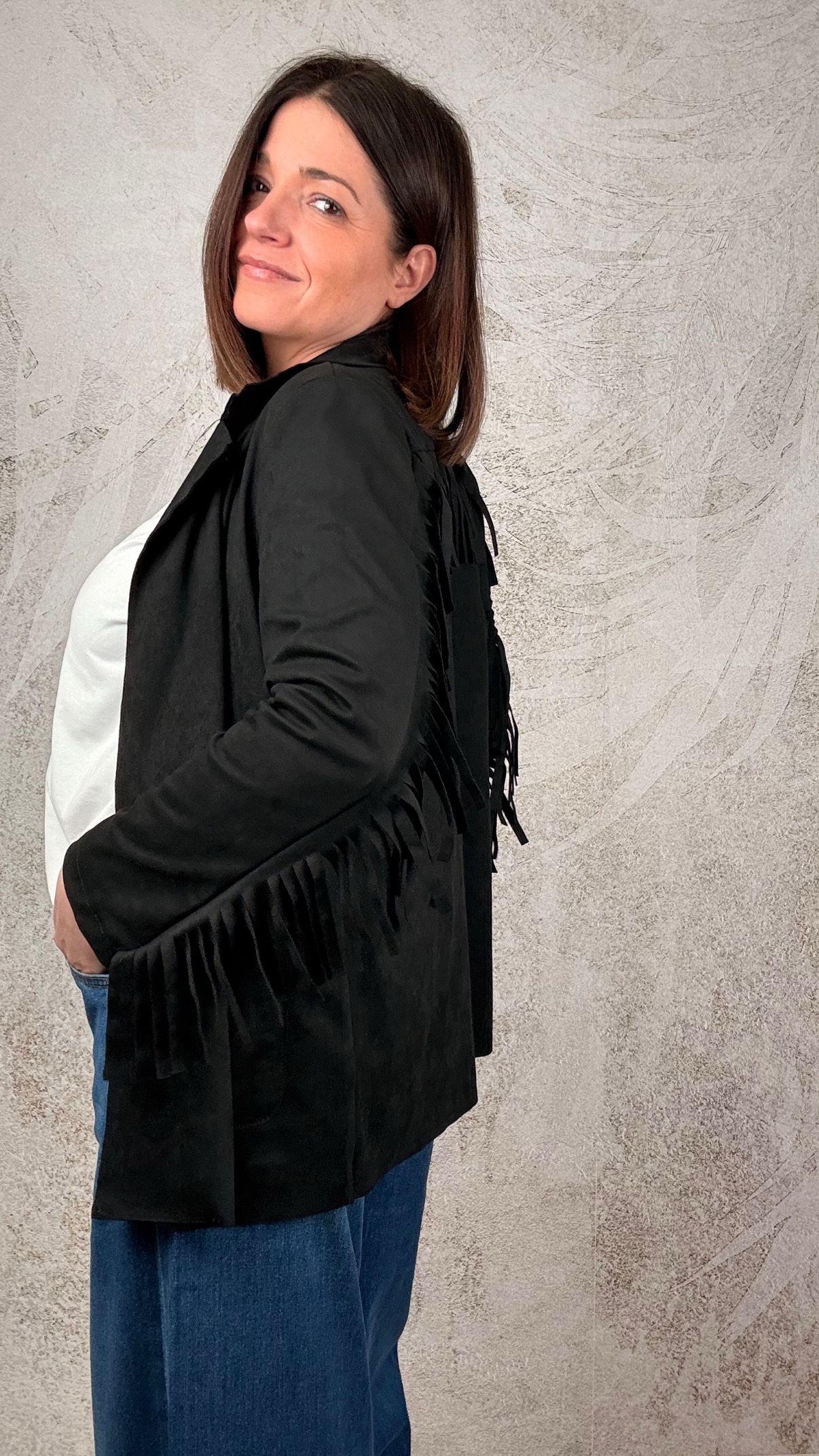 Blazer in suede con frange