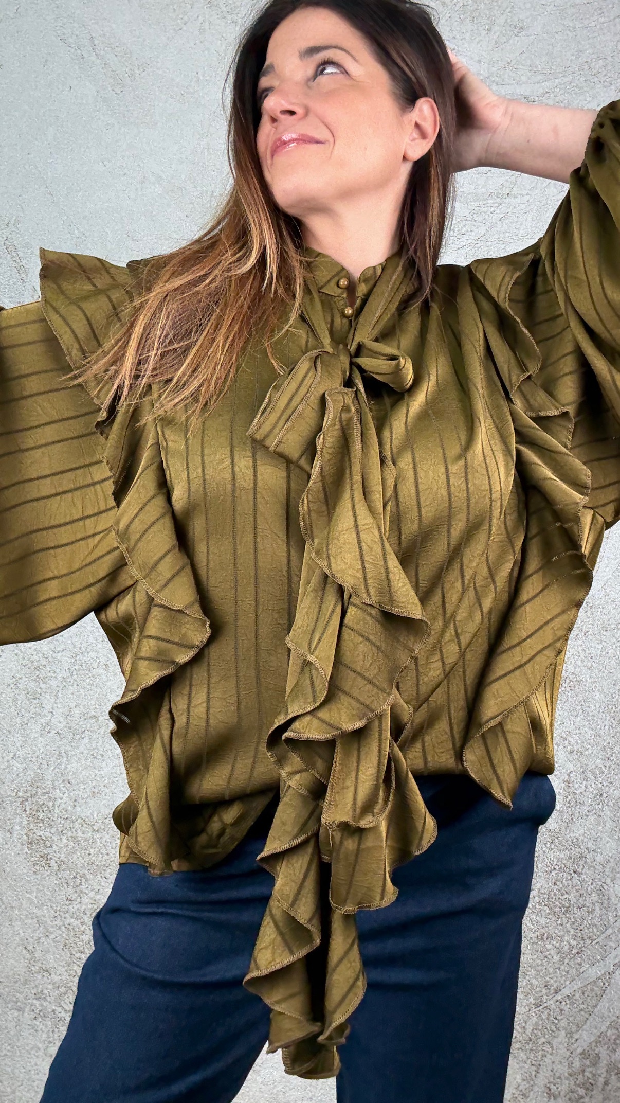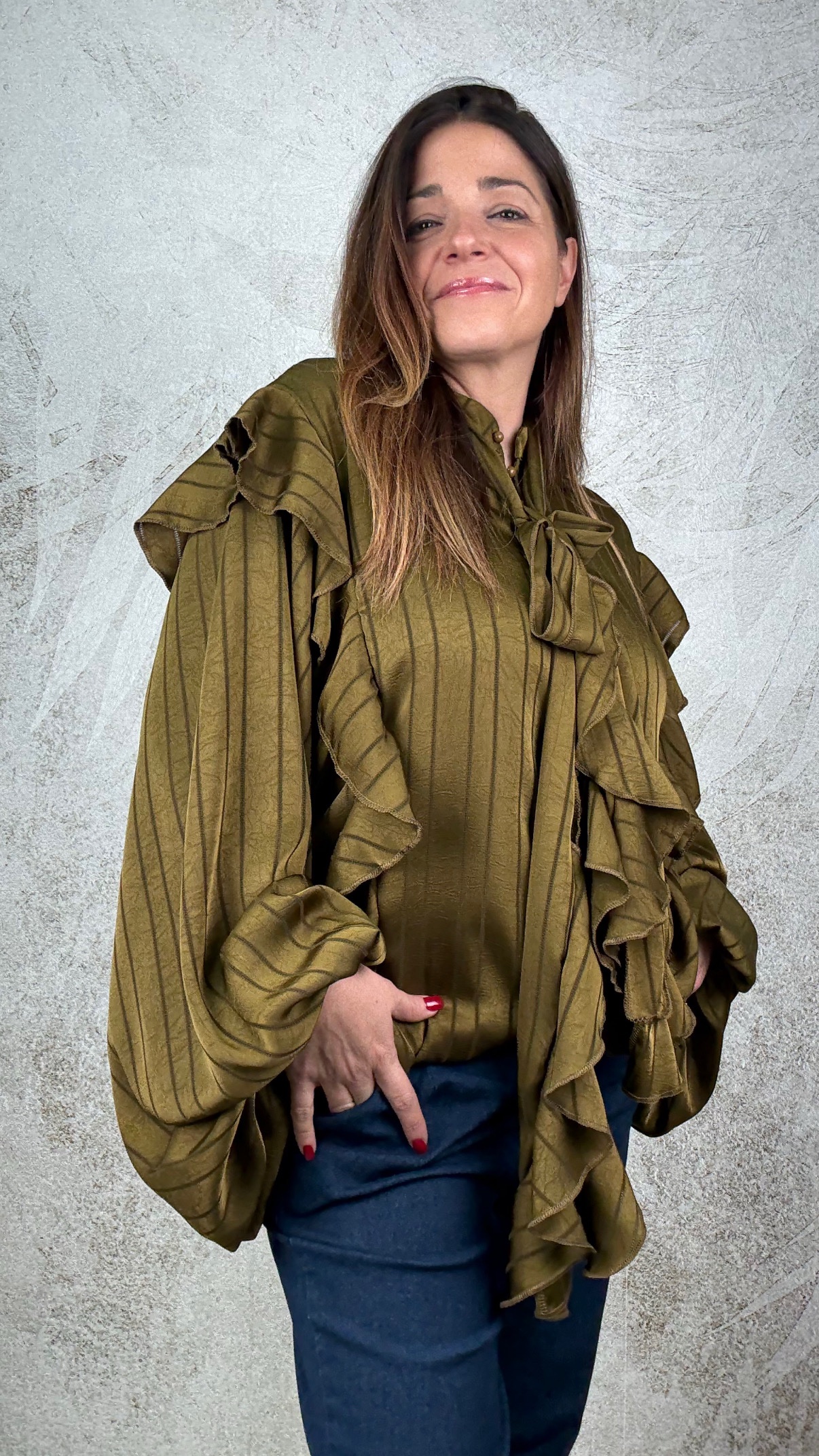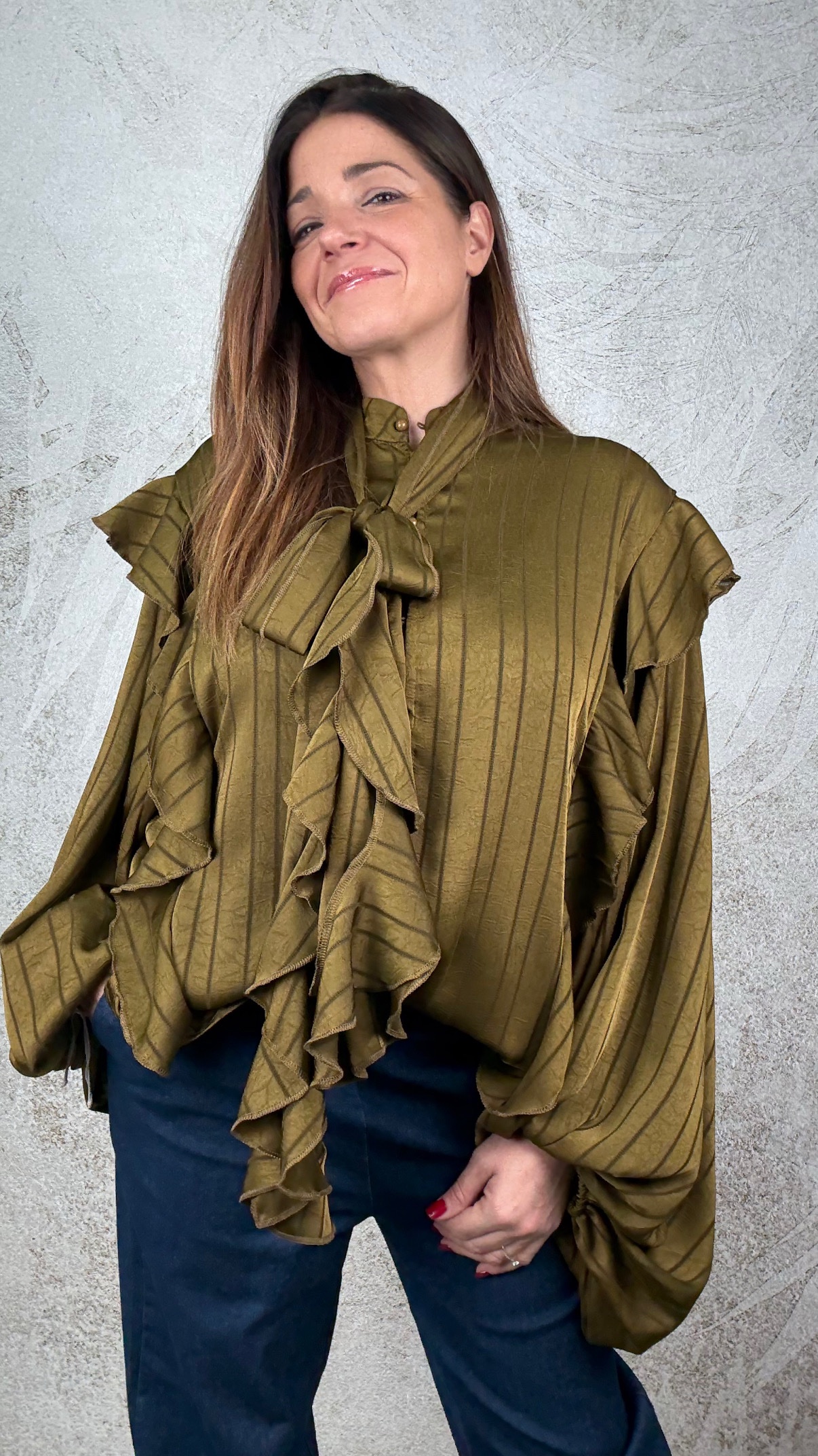 Camicia con fusciacca estraibile, rouches lungo le spalle