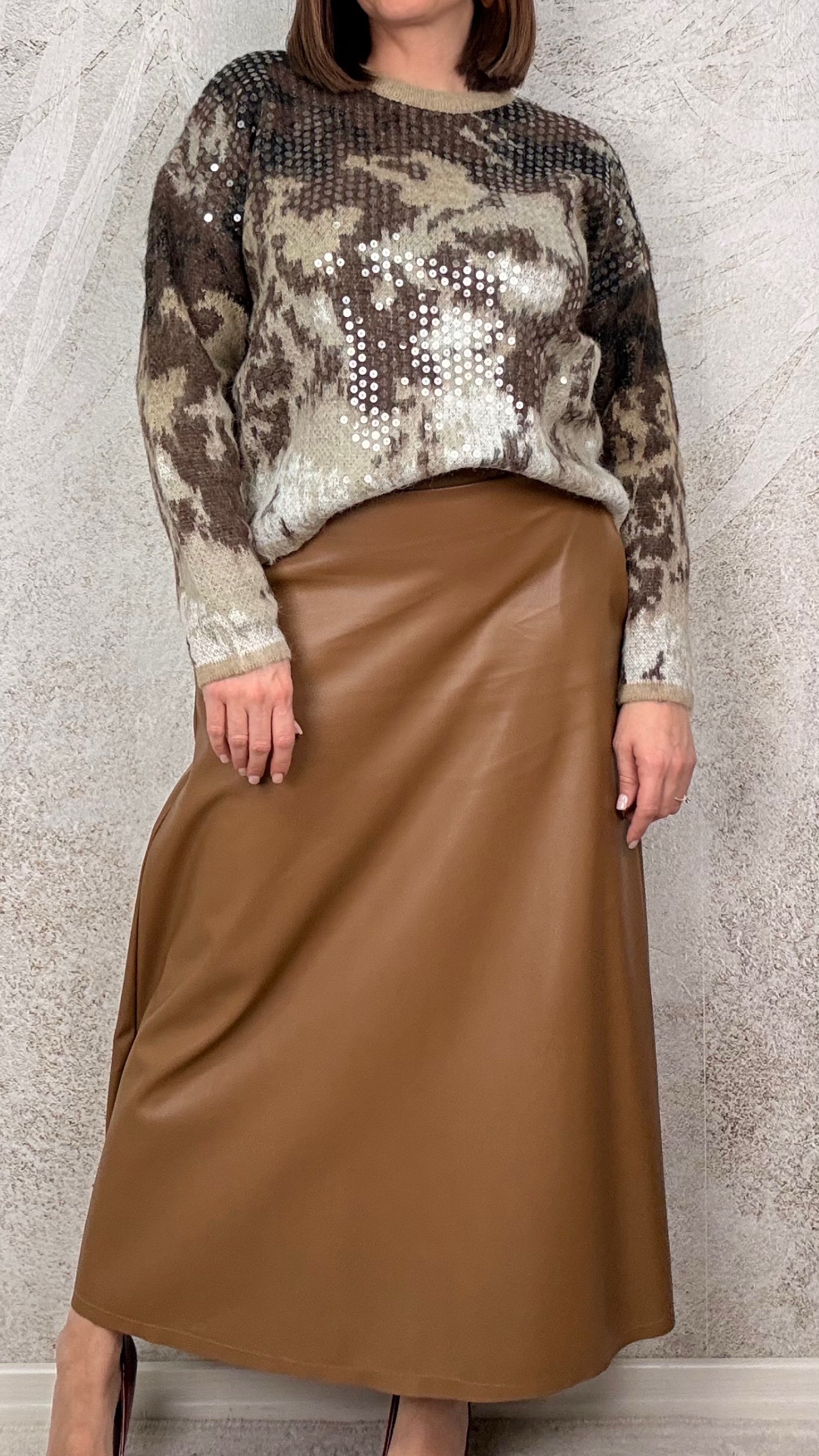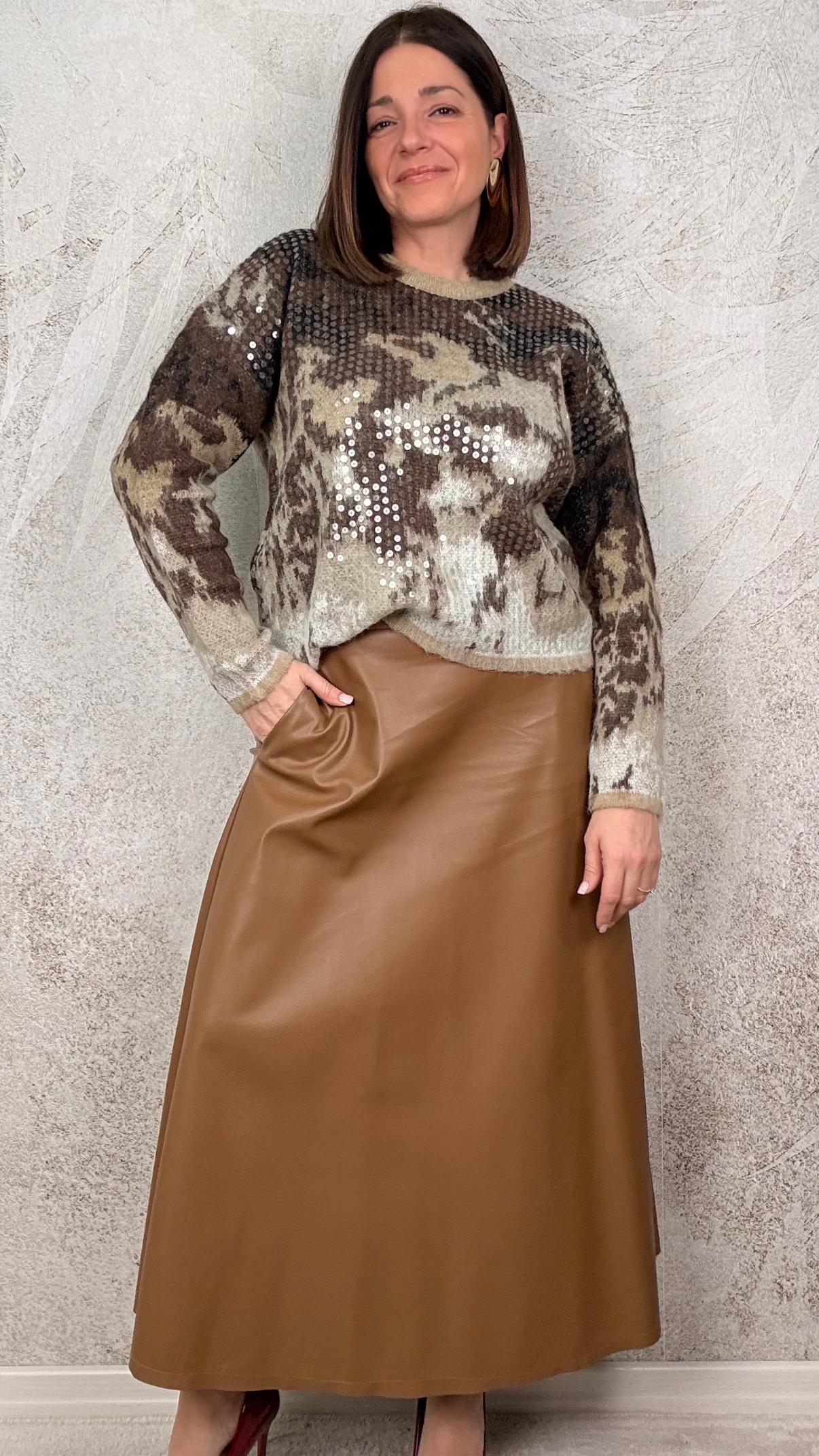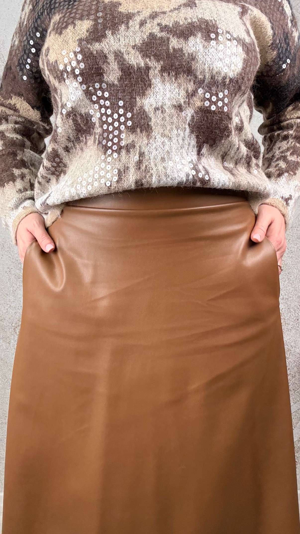 Gonna in ecopelle con elastico in vita e tasche laterali