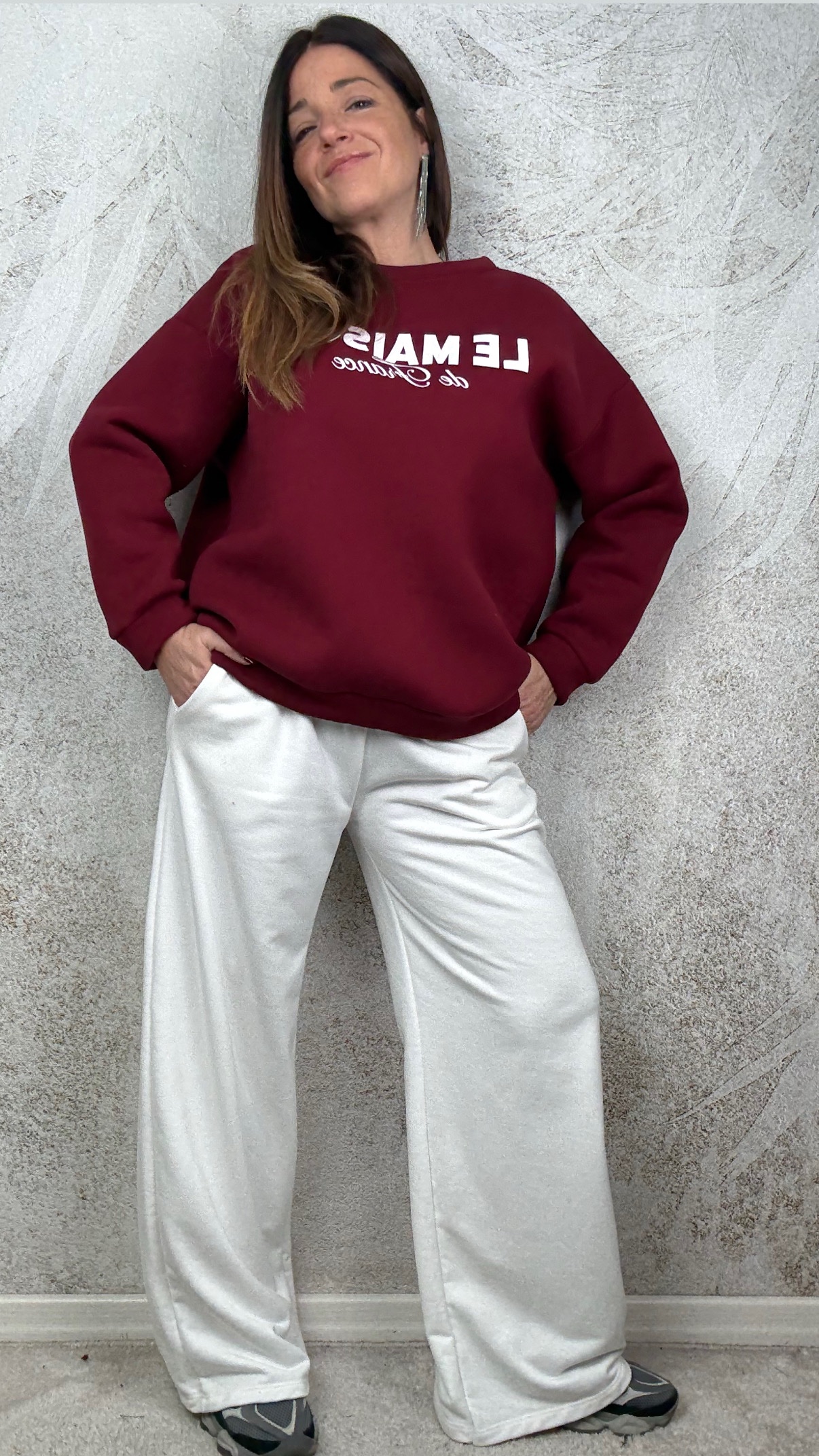 Pantalone con elastico in vita e tasche laterali. Garzato internamente