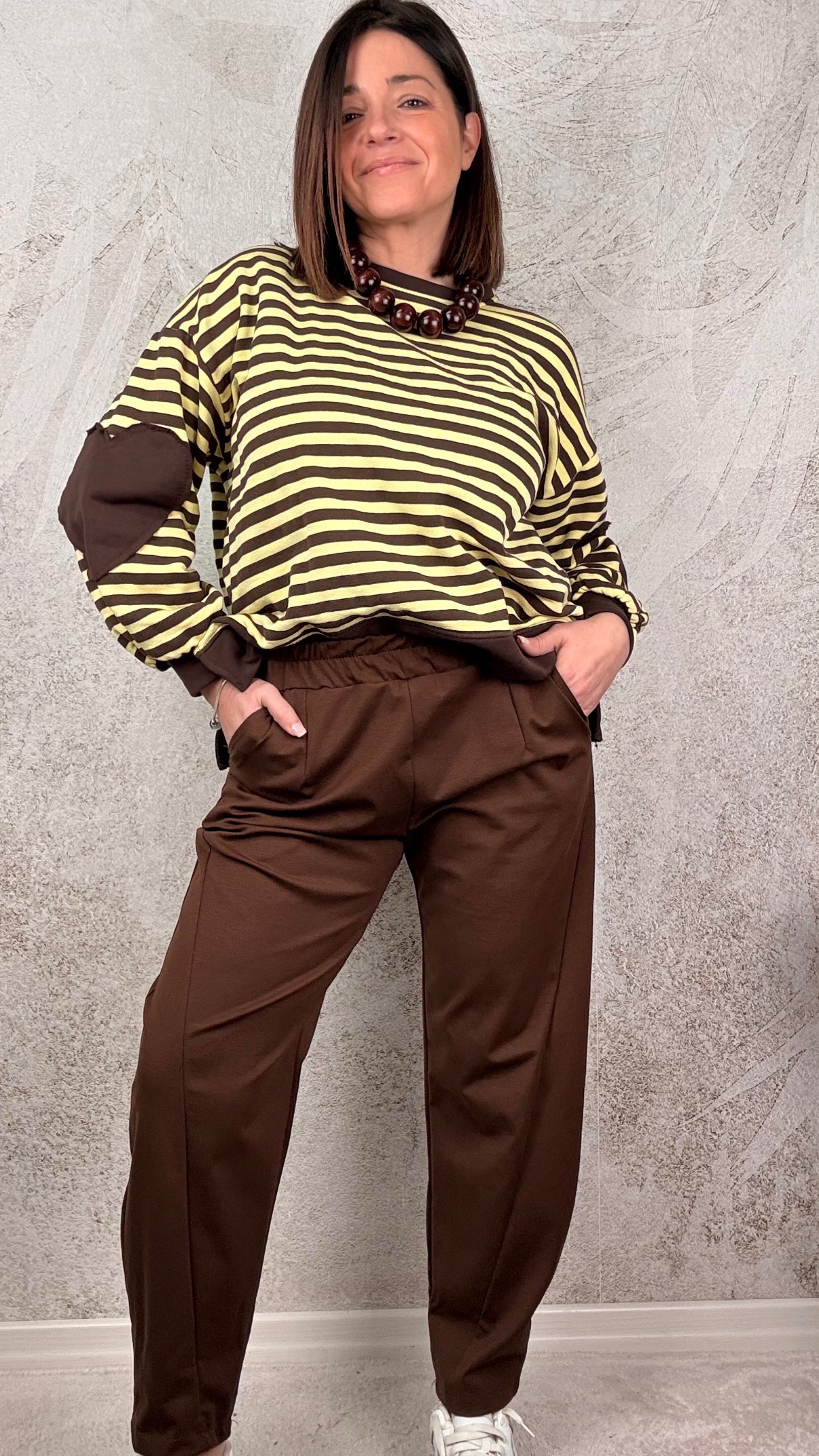 Pantalone con elastico in vita e tasche laterali. Elasticizzato
